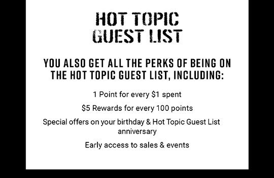 Guest List Credit Card Hot Topic